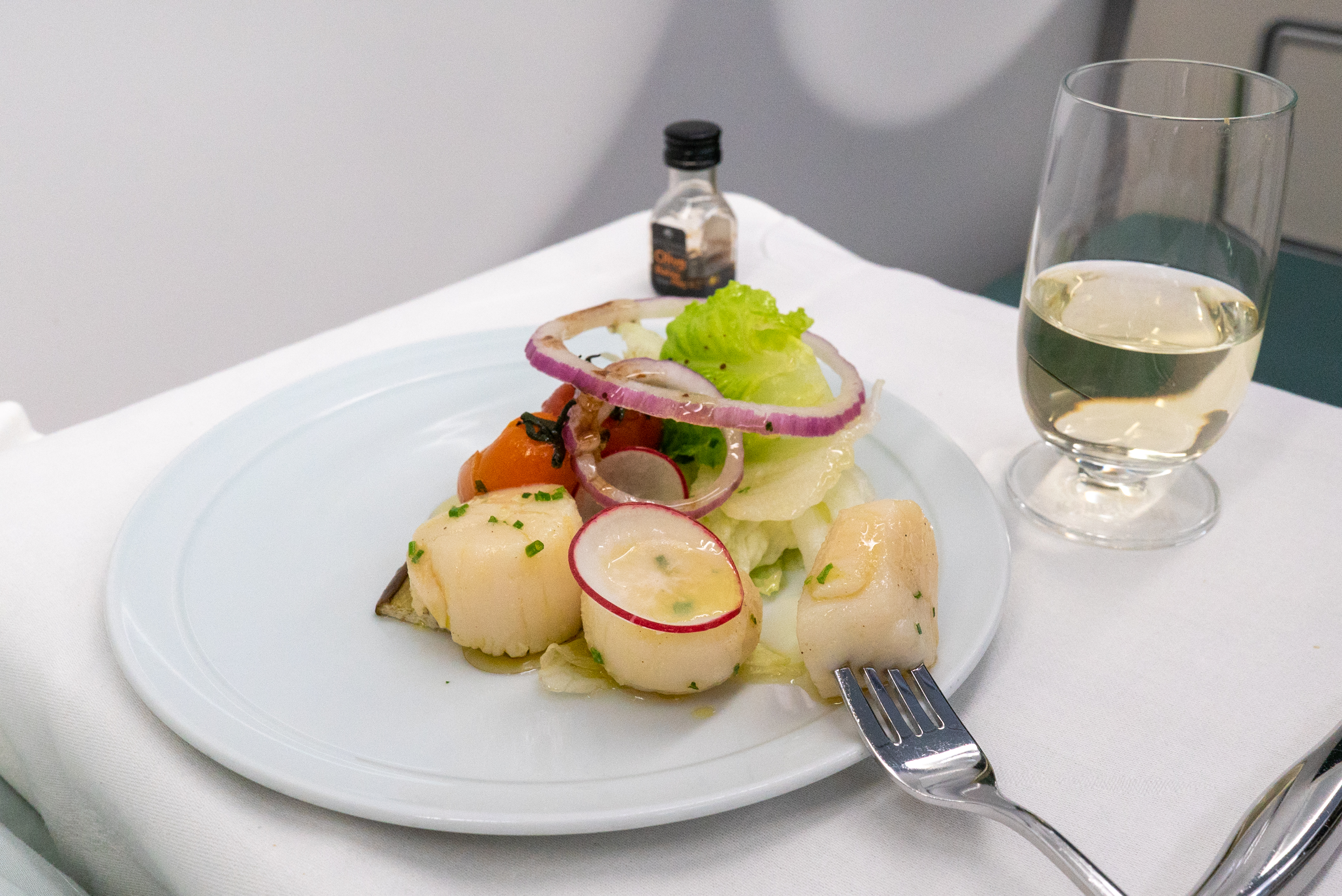 비행기가 이륙하자마자, 와인을 마셨다. 와인을 주문하면 이렇게 승무원이 와인을 보여주며, 짧은 설명도 해 준다. 와인을 마시며 영화를 보고 있으니 바로 저녁 식사가 시작됐다.